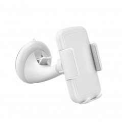 Universal car holder with modern design and high functionality. Allows easy use of the phone or navigation while driving providing security for driver and passengers. Adjustable handle allows to place it in the most optimal place for the eyes and hands of the driver. This enables convenient use of GPS navigation, notifications and other functionalities while driving, ensuring the safety of the driver and passengers. The handle is made of high quality materials that ensures durability and comfortable use. The kit includes mounting arm with a strong suction cup that makes the device can be firmly attached to the windscreen. The suction cup is reusable: simply wash it to be ready for reuse. Colour: White Width: 55-95 mm Arm length: 10 cm